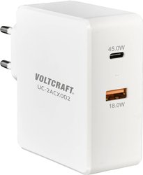 VOLTCRAFT UC-2ACX002 Ładowarka USB 45 W, 63 W gniazdo Maksymalne natężenie wyjściowe 3000 mA Ilość wyjść: 2 x USB, złącze żeńskie USB-C (Power Delivery)
