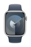 Apple Watch Series 9 GPS 45 mm srebrna aluminiowa obudowa z paskiem sportowym w kolorze burzowego błękitu – M/L Apple Watch Series 9 GPS 45 mm Obudowa aluminiowa Opaska sportowa Niebieski Storm M/L