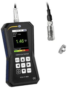 Akcelerometr drgań jest idealnym towarzyszem do sprawdzania wibrujących części, maszyn i systemów. Za pomocą zewnętrznego czujnika drgań na akcelerometrze można określić ścieżkę drgań do 3,9 mm, prędkość drgań do 399,9 mm/s oraz przyspieszenie drgań do 399,9 m/s². RMS, peak, peak-to-peak i współczynnik szczytu są dostępne jako parametry pomiarowe akcelerometru. Kolejną funkcją akcelerometru jest automatyczna ocena zgodnie z ISO 10816-3. Zgodnie z tym akcelerometr może określić aktualny stan wibracji maszyny poprzez ocenę dobrą/złą. Dzięki temu akcelerometr jest wykorzystywany m.in. do prac naprawczych i konserwacyjnych na maszynach. Wbudowany akumulator LiPo o pojemności 2500 mAh pozwala na żywotność do 20 godzin. Akumulator LiPo można ładować przez interfejs micro-USB na akcelerometrze. W celu dalszego przetwarzania zmierzonych wartości można je zapisać bezpośrednio w akcelerometrze. W tym celu dostępna jest pamięć wewnętrzna. Zmierzone wartości mogą być zapisywane ręcznie lub automatycznie przez akcelerometr. Po pomiarze zarejestrowane wartości pomiarowe można odczytać za pomocą komputera PC. Dzięki oprogramowaniu do akcelerometru dane pomiarowe można teraz analizować za pomocą reprezentacji graficznej i zestawienia tabelarycznego. Dane pomiarowe można wyeksportować jako plik CSV do dalszego przetwarzania. Jeśli dostępna jest aktualizacja oprogramowania układowego akcelerometru, można to również przeprowadzić bezpośrednio za pomocą oprogramowania.