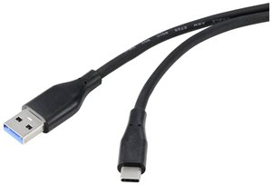 Kabel USB Renkforce, USB 3.2 Gen1 (USB 3.0), Złącze męskie USB-A, Złącze męskie USB-C®, 3.00 m