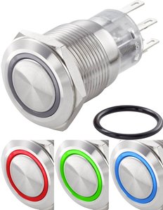 Przełącznik wciskany, wandaloodporny TRU COMPONENTS TC-LAS1-AGQ-11ZE/42RGB/ TC-7494632, 19 mm, 250 V/AC, 3 A, 1 szt.