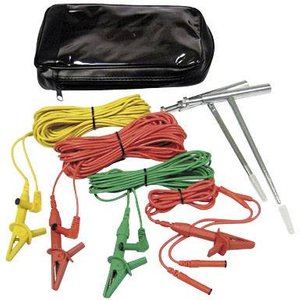 - 3 przewody pomiarowe z zaciskami krokodylkowymi (20 m czerwony, 10 m żółty, 5 m zielony)